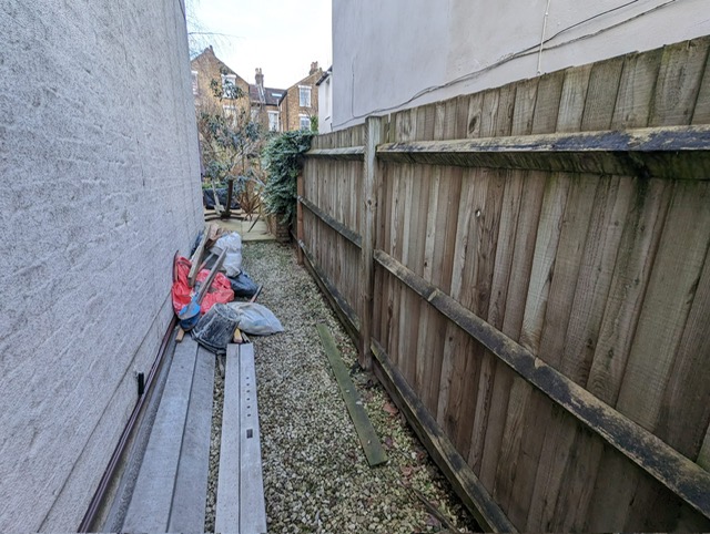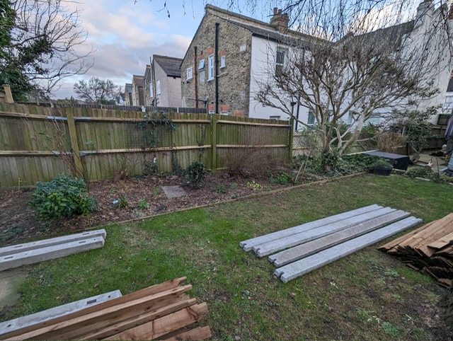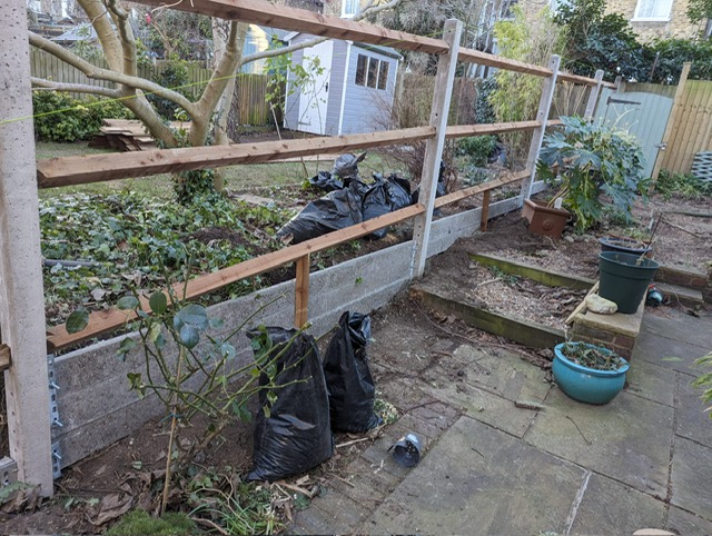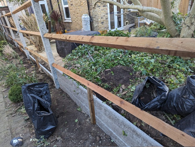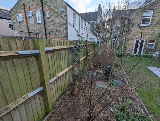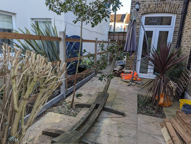 A repeat customer based in Penge SE20 contacted me to say that her fence had blown down due to the severe storm. I arranged a site visit and I could see the job was urgent as it had fallen into the neighbours garden. The customer accepted the estimate and I suggested removing the existing fence of 27 metres and removing the existing wall too as the wall was weak.
