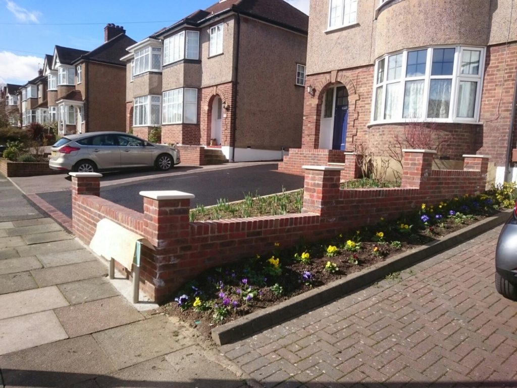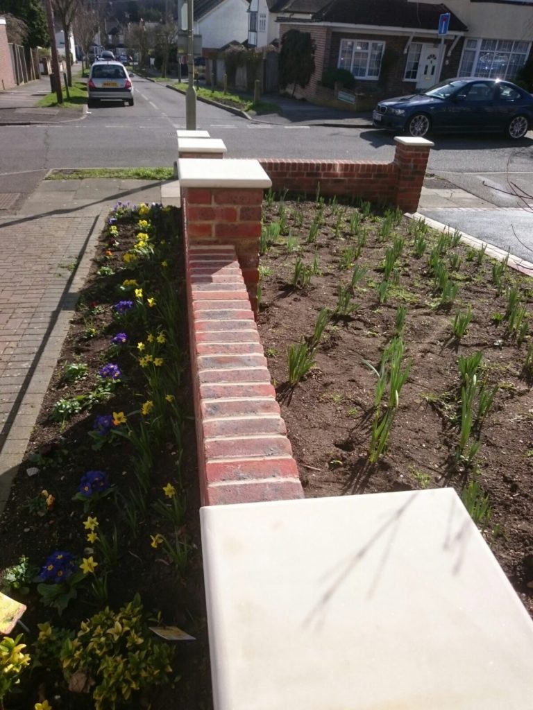 Front garden: The front drive and path were unsafe to walk on and the existing walls were damaged and foundations were in a bad condition.