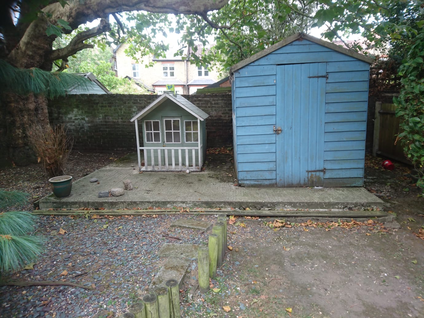 I received an enquiry to quote for a rear garden which at the time was an empty space. The customers showed me their plans for the area and this involved creating a play area for their young children. I agreed to commence the work and this involved removing the two damaged sheds and the play shed and removing the existing concrete shed base.